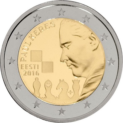 La pièce de deux euros présentée a été émise par l’Estonie en 2016 et célèbre le centenaire de la naissance de Paul Keres, célèbre joueur d’échecs estonien. Keres, reconnu comme l’un des plus grands joueurs d’échecs du XXe siècle, a marqué l’histoire de ce sport. Cette émission souligne l’importance de sa contribution aux échecs et à la culture estonienne.