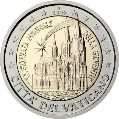 This is the second Vatican coin issued on December 6, 2005, commemorating the 20th World Youth Day.